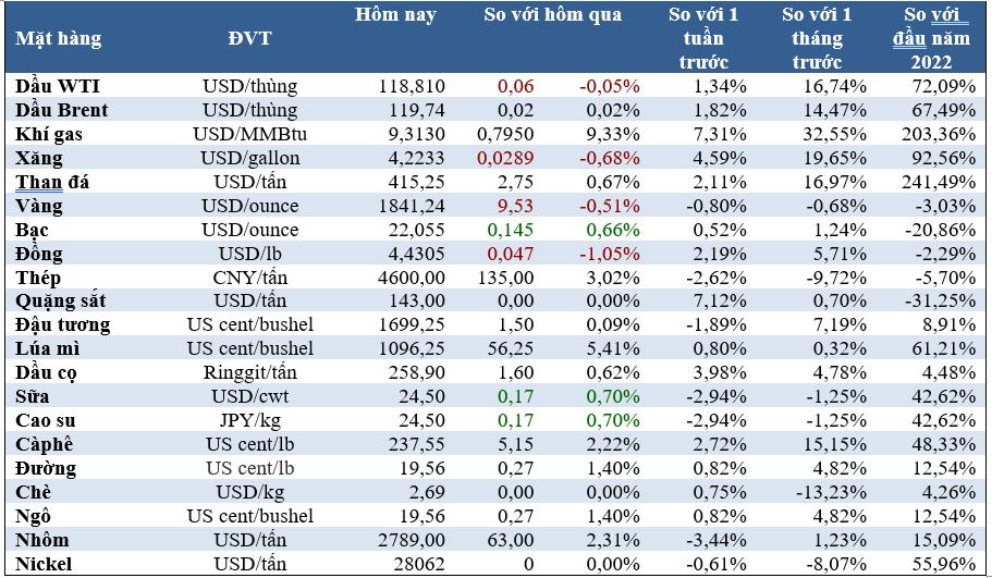 Giá dầu Brent kết thúc phiên giảm giảm 21 cent, tương đương 0,2% xuống 119,51 USD/thùng sau khi chạm mức cao nhất trong ngày là 121,95 USD. Giá Tây Texas (WTI) của Mỹ giảm 37 cent, tương đương 0,3% xuống 118,50 USD/thùng, sau khi chạm mức cao nhất trong ba tháng là 120,99 USD; trong phiên có lúc dầu WTI giảm 1 USD.